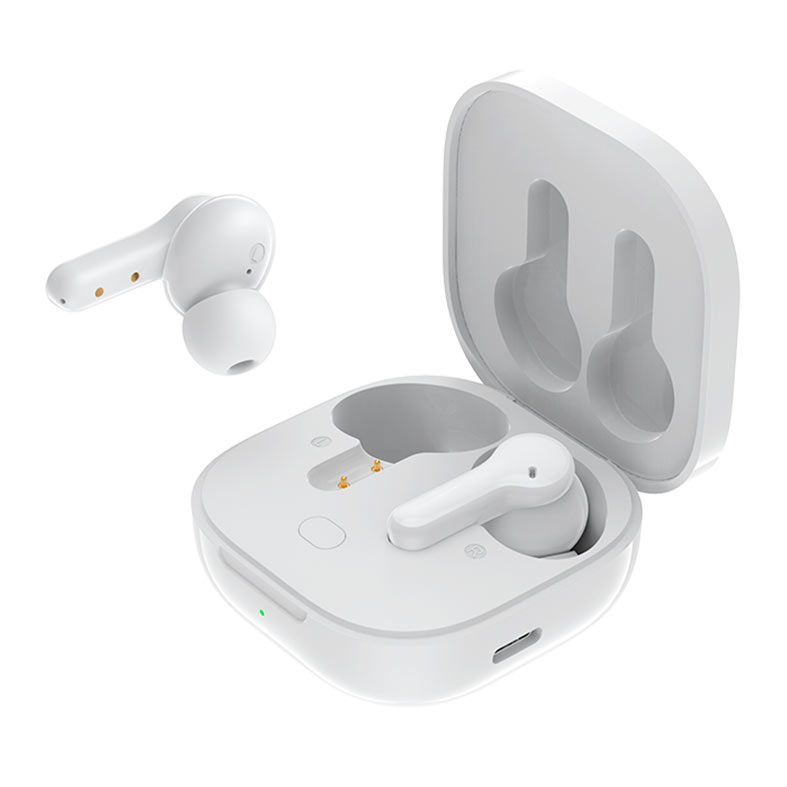 O QCY T13 ENC Clássico é um fone intra-auricular elegante e discreto, com acabamento na cor branca. Possui conexão Bluetooth sem fio e tecnologia ENC para melhorar a qualidade de chamadas. Sua construção é compacta e confortável para uso prolongado.