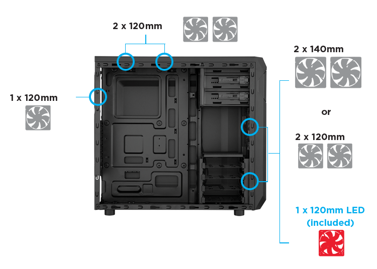 1x ventoinha 120mm (inclusa) LED Blue