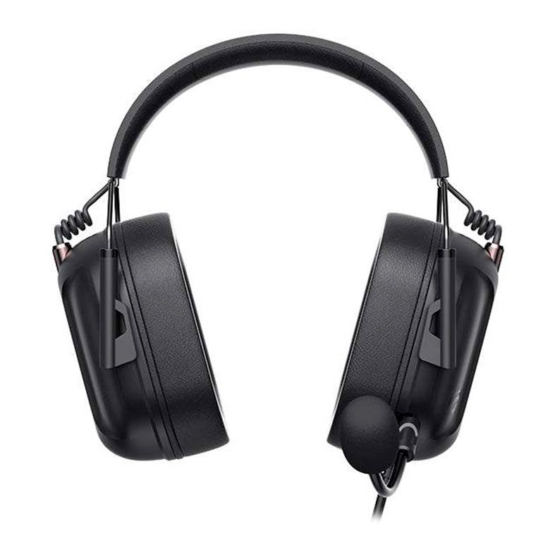 O headset é equipado com cabo de 2,2 metros, oferecendo mobilidade adequada para diferentes setups sem limitar os movimentos. A conexão é feita através de um único conector de 3,5mm.