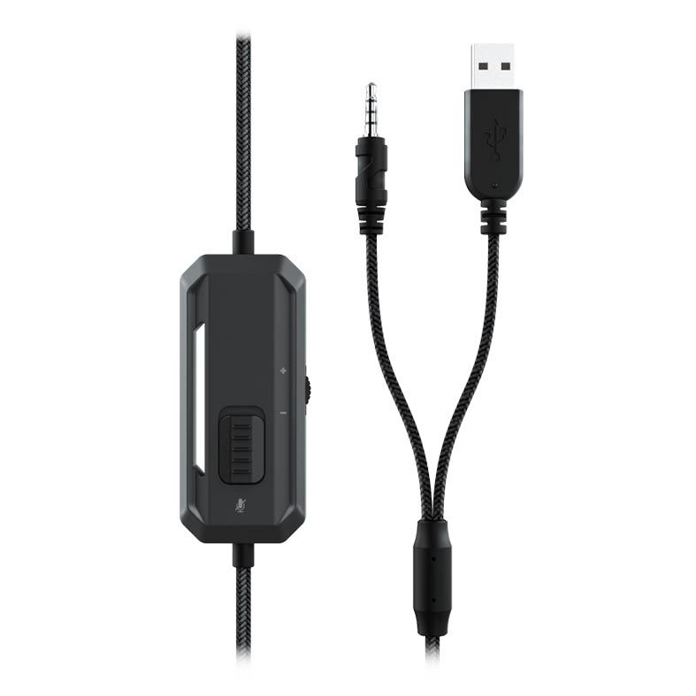 | Características: | Áudio potente graças aos altifalantes de 50 mm A iluminação LED nas laterais confere um visual único a estes auscultadores As conchas supra-aurais grandes e macias permitem-te jogar confortavelmente durante horas a fio Fala com os teus colegas de equipa através do microfone dobrável e flexível Regula o volume e silencia/ativa o som do microfone com o telecomando em linha O cabo entrançado de 2,3 m é feito em material forte e resistente Utiliza uma ligação AUXILIAR para o som e uma ligação USB para a iluminação LED A ficha única de 3,5 mm para portáteis vem com um divisor em Y para PC que requerem duas ligações separadas |
