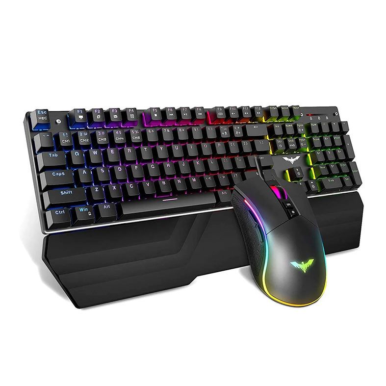 O conjunto Havit KB389L de teclado mecânico e mouse possui painel totalmente em metal e design de teclas flutuantes. As teclas do teclado são sensíveis ao toque, contam com switches azuis e todas as 104 teclas possuem switches individuais com rollover completo de n-keys e anti-ghosting.