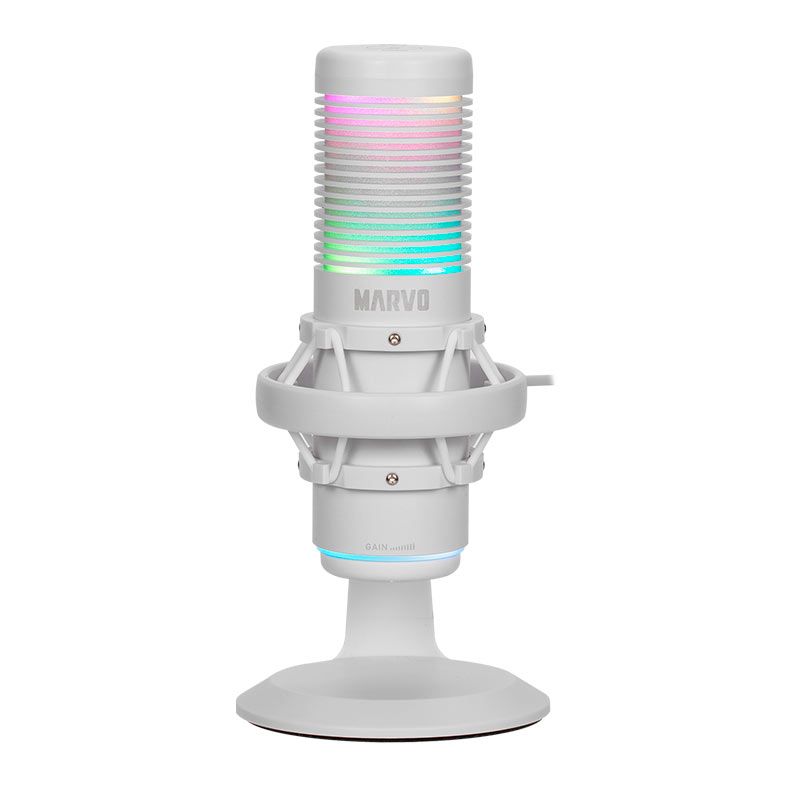 O Marvo MIC-07 Blast 60 é um microfone gamer projetado para quem busca uma comunicação clara e de alta qualidade. Com um design elegante na cor branca e iluminação RGB, ele não é apenas uma ferramenta funcional, mas também um acessório que adiciona um toque de estilo ao seu setup, sendo ideal para jogos, transmissões ao vivo (streams) e gravações.