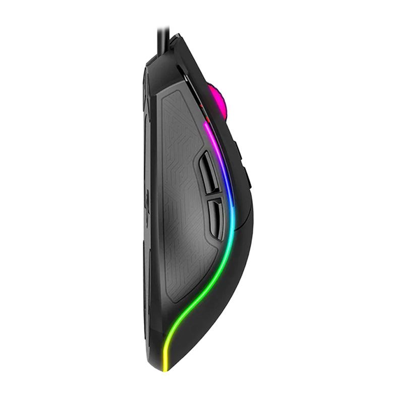 A iluminação RGB personalizável adiciona personalidade ao setup, com efeitos vibrantes que elevam a experiência visual durante as partidas. Seu design garante conforto em longas sessões de uso, enquanto os botões bem posicionados proporcionam praticidade e agilidade em cada jogada.