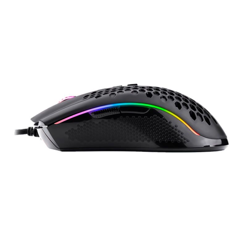 Graças a seu design no estilo colméia, o Storm pesa apenas 97g e é equipado com o sensor PIXART PWM 3327.