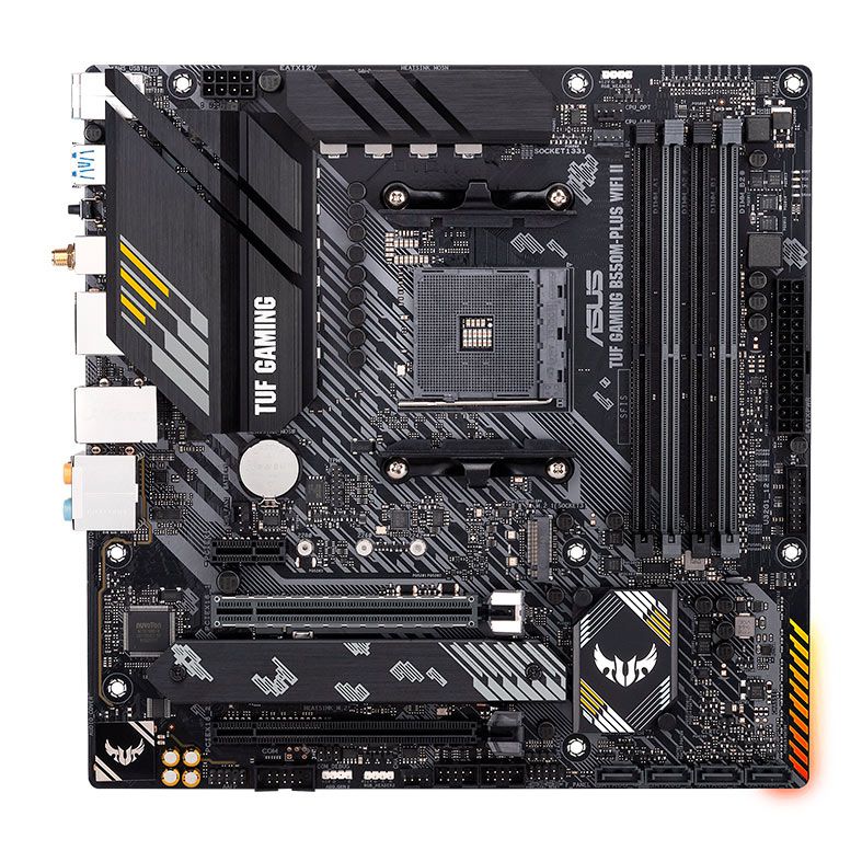 A TUF Gaming B550M-PLUS (Wi-Fi) II reúne os elementos essenciais da mais recente plataforma AMD e os combina com funcionalidades prontas para jogos e durabilidade comprovada.