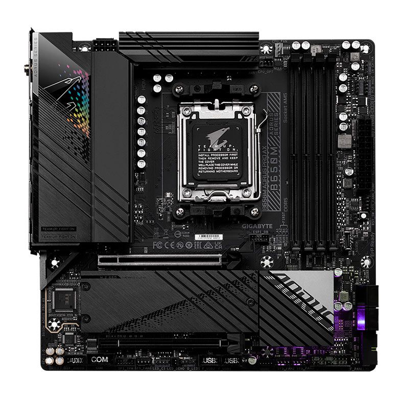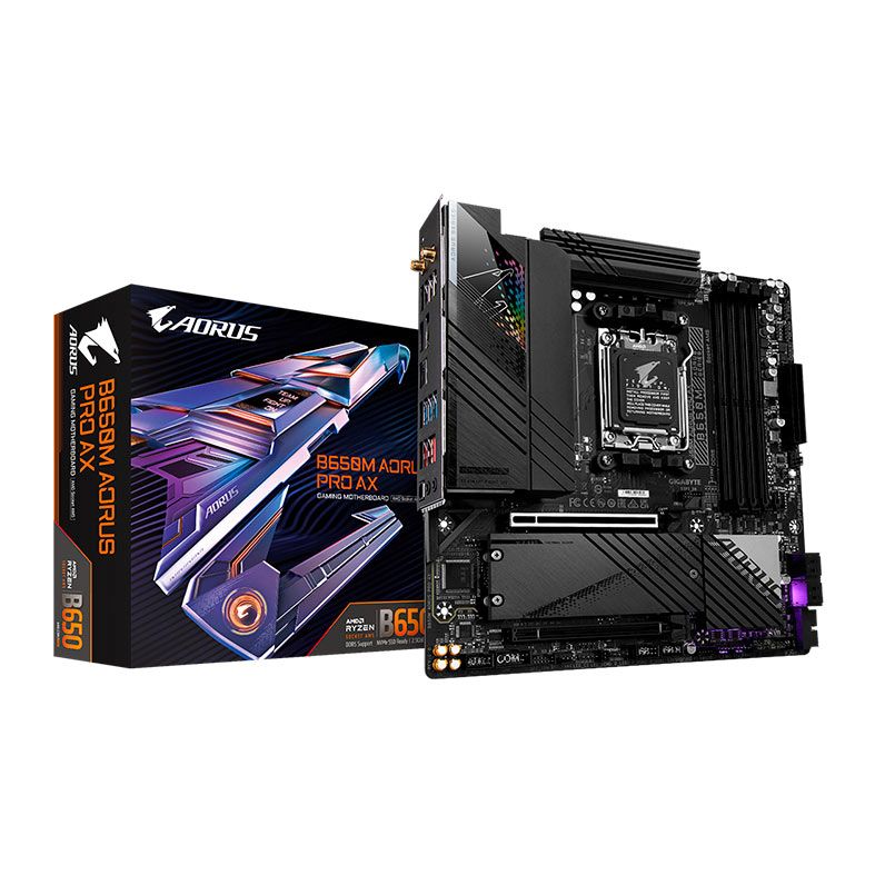 A placa mãe B650M AORUS PRO AX suporta processadores AMD AM5 de geração 7000. Com capacidade para quatro memórias DDR5 de até 6666MHz(O.C.), um NVMe PCIe Gen5 x4 e um NVMe PCIe Gen4 x4 (podem variar dependendo da CPU) lhe trará toda a construção necessária para completar o seu setup.