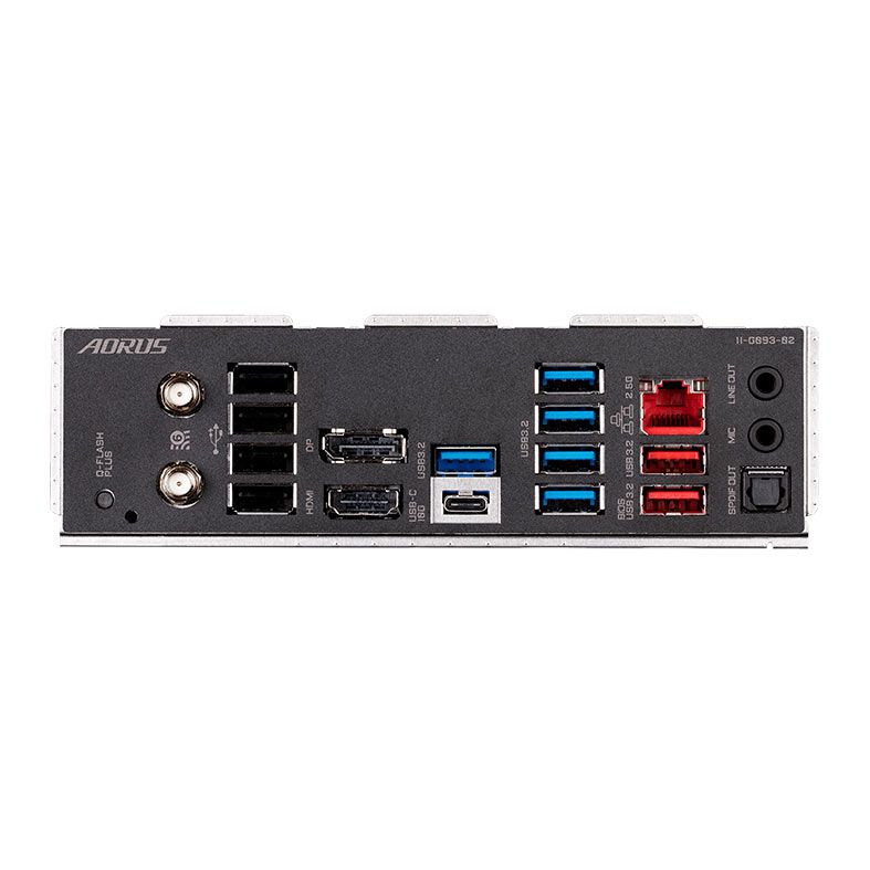 | Painel Traseiro: | 1 x Botão Q-Flash Plus 2 x Conectores de antena SMA (2T2R) 1 x DisplayPort 1 x Porta HDMI 2.0 1 x Porta USB Type-C ® , com suporte a USB 3.2 Gen 2 2 x Portas USB 3.2 Gen 2 Tipo A (vermelho) 5 x Porta USB 3.2 Gen 1 4 x Portas USB 2.0/1.1 1 x Porta RJ-45 1 x Conector de saída S/PDIF óptico 2 x Entradas de áudio |