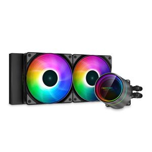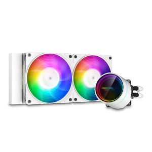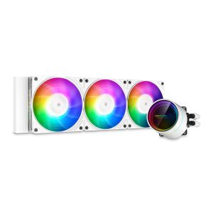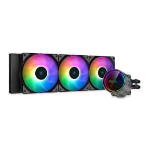 O DeepCool LS320 maximiza o desempenho de resfriamento e eficiência de ruído baixo com um radiador de 120mm, ventoinhas PWM FC120 A-RGB, e um design de tampa espelhada infinita.