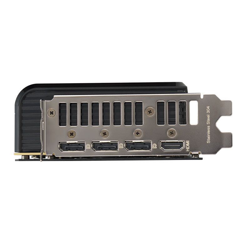 Grandes aberturas na placa traseira aumentam significativamente a dissipação de calor, ajudando a manter a GPU mais fria durante tarefas intensas. Esse fluxo de ar adicional ajuda a garantir temperaturas ideais, aumentando o desempenho, a longevidade e a estabilidade, defendendo contra superaquecimento e limitação térmica.