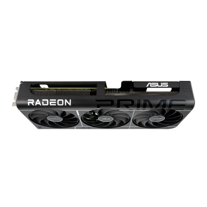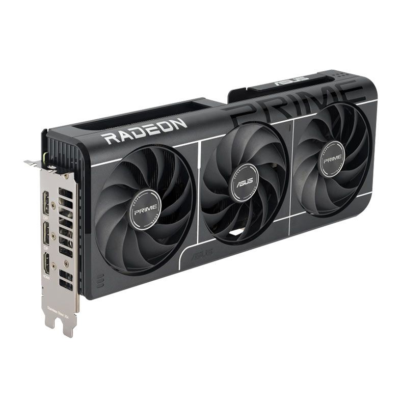 A Prime Radeon RX 9060 XT apresenta um design de 2,5 slots com um layout cuidadosamente organizado para o invólucro, o dissipador de calor e os tubos de calor para permitir que as três ventoinhas Axial-tech aproveitem a ventilação do painel lateral do chassi e ofereçam um™ desempenho térmico ideal.