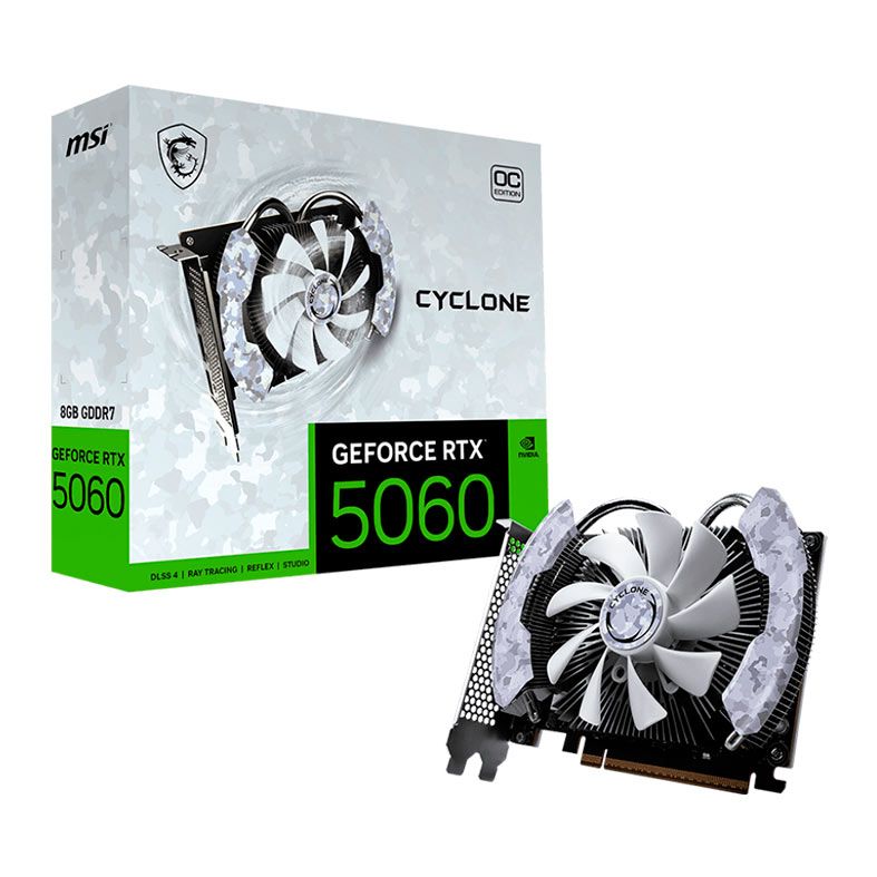 O legado se reinventa e retorna para uma nova era: A linha MSI CYCLONE está de volta com um design fosco camuflado de neve que combina o charme nostálgico com um visual moderno e um arrefecimento de alta eficiência.