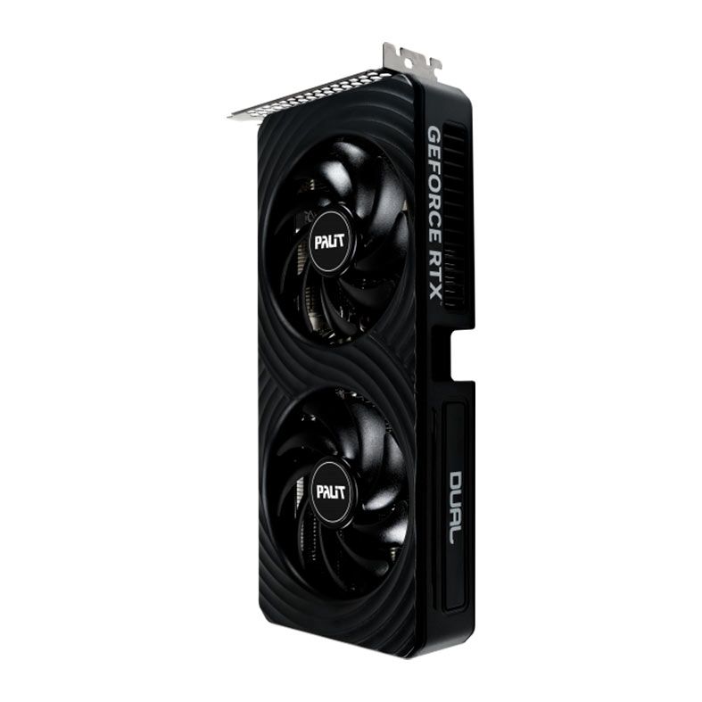 A Palit GeForce RTX™ 5060 Dual oferece eficiência clássica de resfriamento em um design preto elegante e moderno. Dois ventiladores de 95 mm garantem um resfriamento eficiente e operação silenciosa, enquanto o design compacto de 2 slots é ideal para gabinetes de pequeno porte. Uma placa traseira resistente proporciona maior rigidez estrutural.