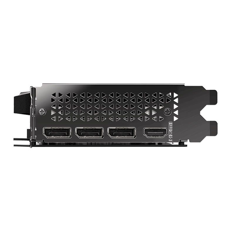 A placa de vídeo conta com um conjunto moderno de saídas de vídeo, oferecendo três portas DisplayPort 2.1b e uma porta HDMI 2.1b, garantindo alta compatibilidade com monitores e TVs de última geração. Esse conjunto permite conectar múltiplos displays simultaneamente, ideal para setups avançados, produtividade multitela e experiências imersivas em jogos.