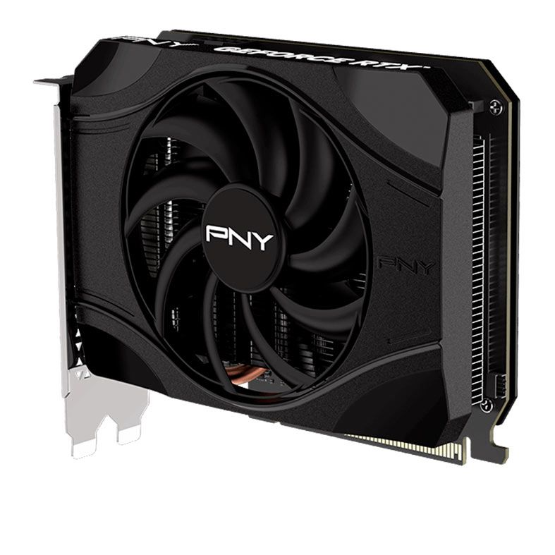 Uma ventoinha de resfriamento ativo dissipa o calor de forma eficaz por toda a superfície da GPU.