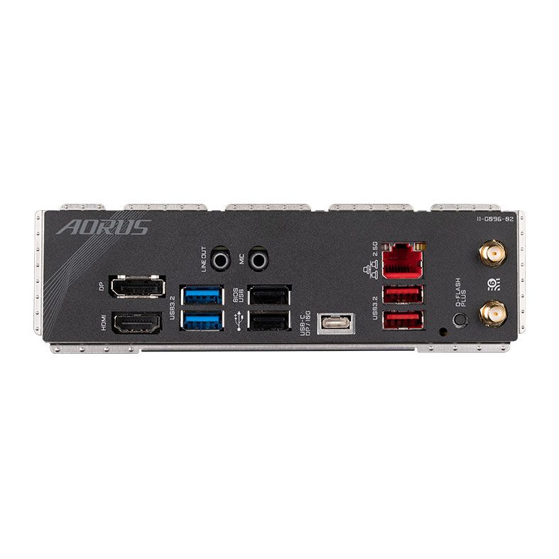 | Painel Traseiro: | 1 x Porta de exibição 1 x Porta HDMI 1 x Porta USB Type-C® (DisplayPort), com suporte para USB 3.2 Gen 2 2 x Portas USB 3.2 Gen 2 Tipo A (vermelhas) 2 x Portas USB 3.2 Gen 1 2 x Portas USB 2.0/1.1 1 x Porta RJ-45 2 x Conectores de antena SMA (2T2R) 1 x Botão Q-Flash Plus 2 x Entradas de áudio |