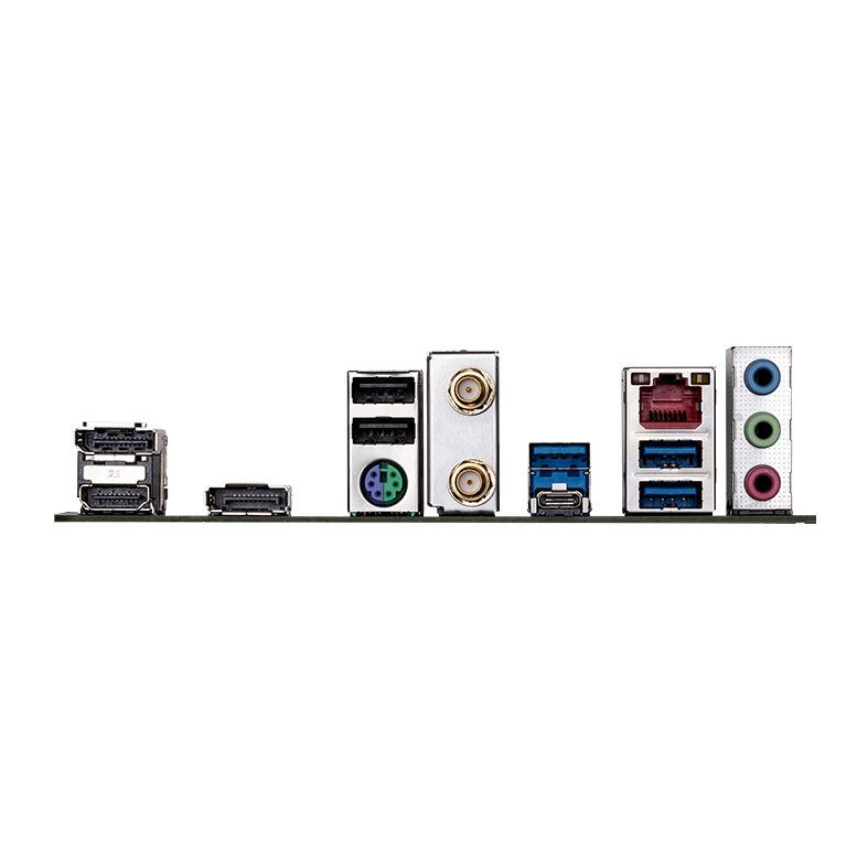 | Painel Traseiro: | 1 x Porta PS/2 para teclado/mouse 1 x Porta USB Type-C®, com suporte para USB 3.2 Gen 1 3 x PortaS USB 3.2 Gen 1 2 x PortaS USB 2.0/1.1 1 x Porta HDMI 2 x DisplayPorts 2 x Conectores de antena SMA (2T2R) (1T1R)* * Somente para Realtek® Wi-Fi 6 RTL8851BE 1 x Porta RJ-45 3 x Conectores de áudio |