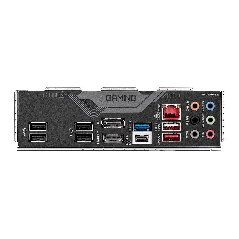 | Painel Traseiro: | 1x porta USB 3.2 Gen 2 Tipo A (vermelha) 1x porta USB Tipo C®, com suporte para USB 3.2 Gen 1 1x porta USB 3.2 Gen 1 5x portas USB 2.0/1.1 2x conectores de antena (2T2R) 1x DisplayPort (Observação) 1x porta HDMI (Observação) 1x porta RJ-45 6x conectores de áudio (Observação) O suporte real pode variar de acordo com a CPU. |