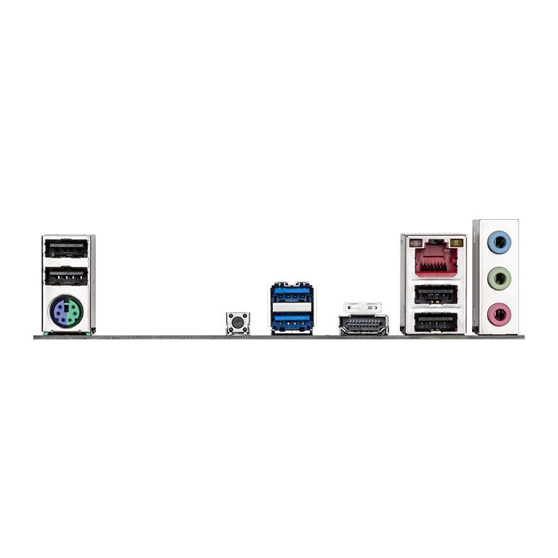 | Painel Traseiro: | 1 x Porta PS/2 para teclado/mouse 2 x Portas USB 3.2 Gen 1 4 x Portas USB 2.0/1.1 1 x Porta HDMI* 1 x Botão Q-Flash Plus 1 x Porta RJ-45 3 x Conectores de áudio * O suporte real pode variar de acordo com a CPU. |