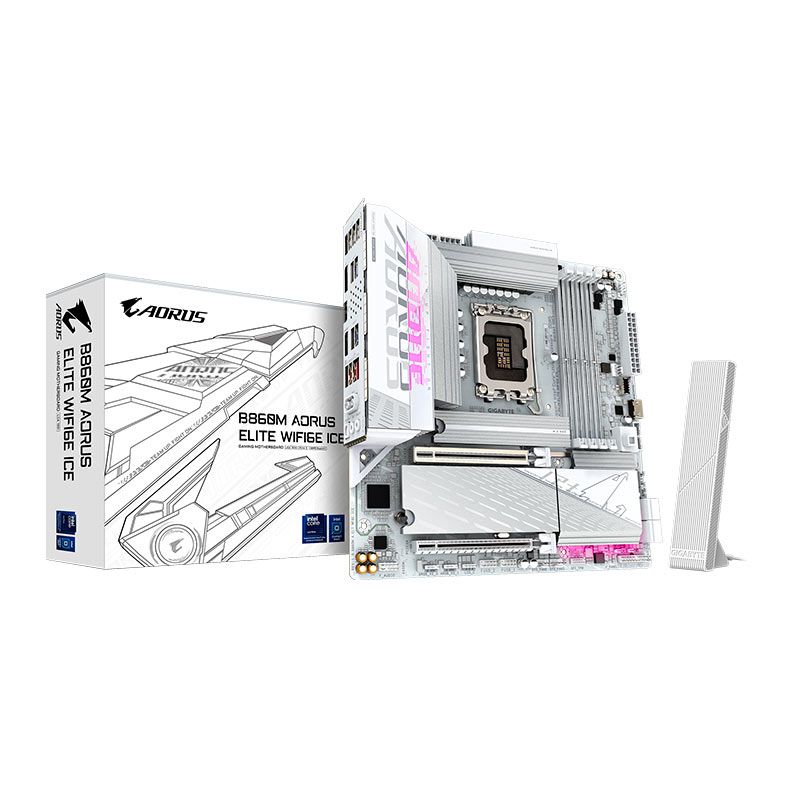 A Placa-Mãe Gigabyte B860M Aorus Elite WIFI6E Ice é uma excelente escolha para quem deseja montar um setup compacto e moderno com visual branco sofisticado. Compatível com processadores Intel LGA1851 e memórias DDR5, ela une estilo e performance.