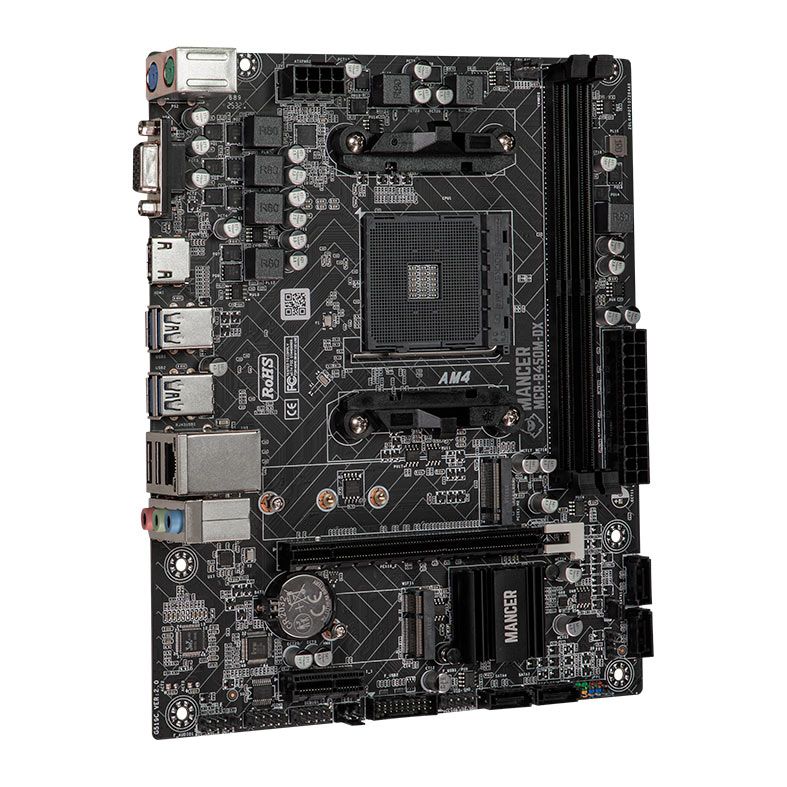 Projetada para desempenho equilibrado, a Mancer B450M-DX é compatível com processadores AMD AM4 e suporta memórias DDR4 até 2400 MHz. Ela oferece estabilidade e fluidez, garantindo uma experiência sem travamentos tanto em tarefas do dia a dia quanto em jogos: seja para um RPG épico ou algo mais casual.