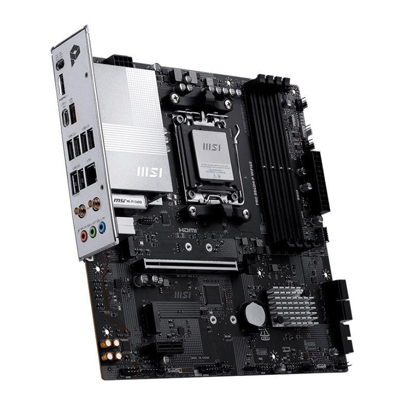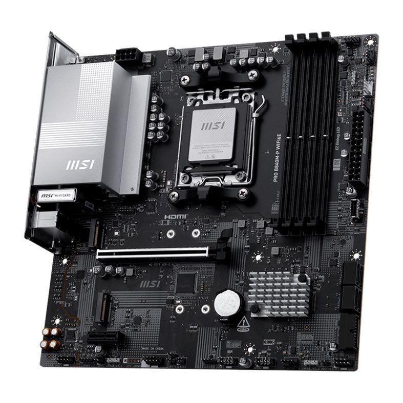 A PRO B840M-P WIFI6E oferece um design simples com um harmonioso esquema de cores prateado que combina perfeitamente com PCs brancos e pretos. Ela foi projetada com diversos recursos exclusivos da MSI, como Wi-Fi 6E com EZ Antenna, LAN de 2,5G e PCIe 4.0 M.2, sendo compatível com os processadores AMD Ryzen™ série 9000.