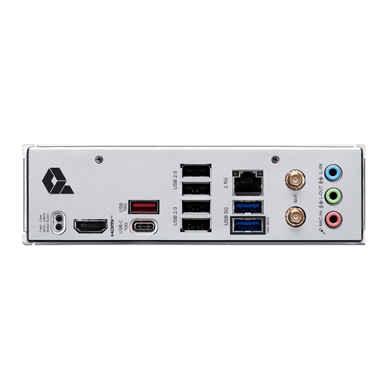 | Painel Traseiro: | 1 x Botão Limpar CMOS 1 x HDMI™ 1 x USB 10Gbps Tipo A 4 x USB 2.0 1 x LAN de 2,5G 1 x Wi-Fi / Bluetooth Conectores de áudio 1 x Botão Flash BIOS 1 x USB 10Gbps Tipo-C 2 x USB 5Gbps Tipo A |
