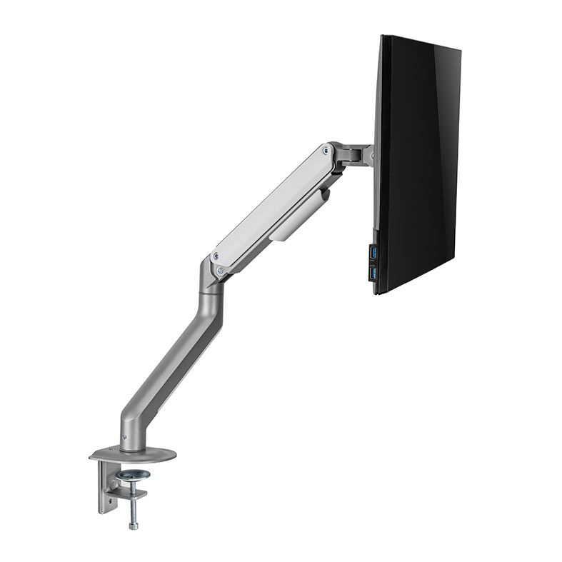 Seu visual moderno com acabamento prateado dá um toque sofisticado ao ambiente. A estrutura metálica de alta durabilidade garante firmeza e estabilidade ao monitor, mesmo em posições mais elevadas.