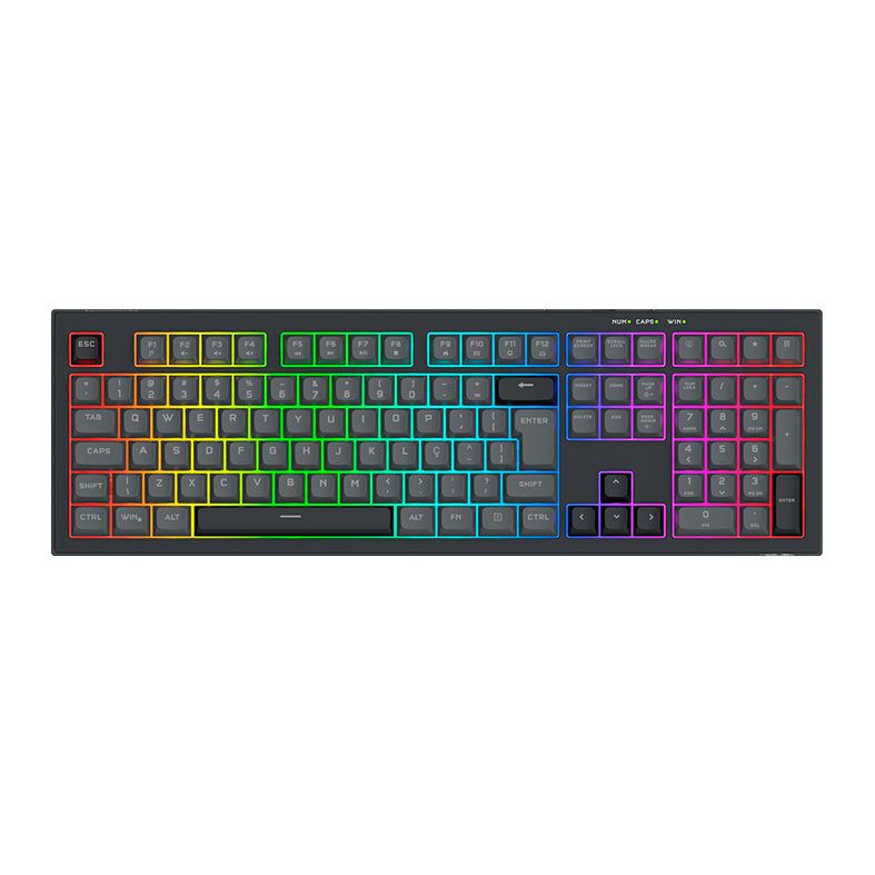 A iluminação RGB proporciona efeitos dinâmicos e ajustáveis, permitindo ao usuário adaptar o visual do teclado ao seu setup. Sua construção reforçada garante resistência ao uso contínuo, enquanto o perfil ergonômico proporciona uma digitação confortável por longos períodos.