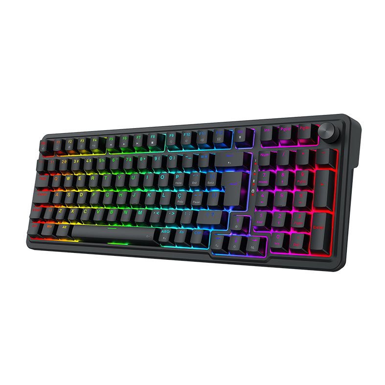 Rapid Trigger ideal para jogos competitivos - Tamanho 1800 compact para os usuários que buscam dar mais espaço para o mouse - Iluminação RGB individual por tecla trazendo mais brilho para seu setup - Roda de volume integrada no canto superior direito para ajustes rápidos e práticos - Layout ABNT2 feito especialmente para o mercado brasileiro |