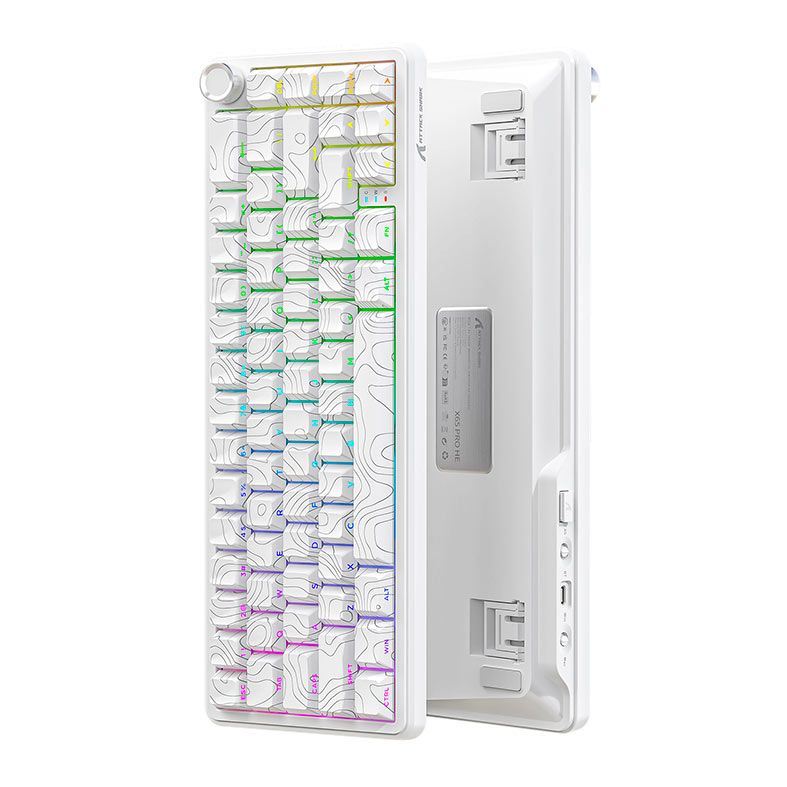 O Attack Shark X65Pro HE é um teclado mecânico wireless de alto nível com switches magnéticos lineares, RGB completo e visual branco elegante ideal para setups modernos e exigentes.
