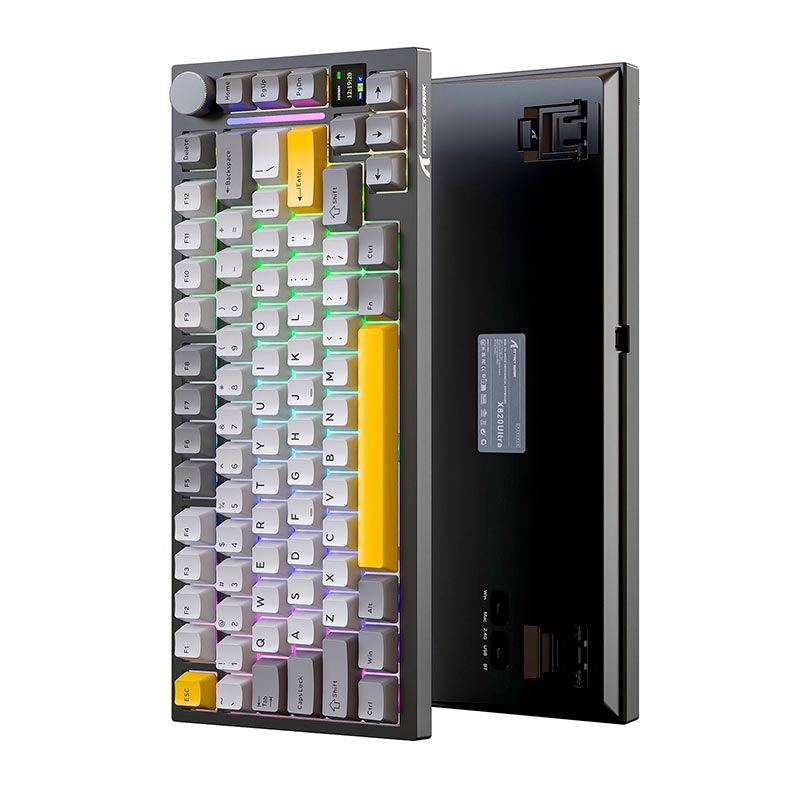 O Attack Shark X820 Ultra é um teclado mecânico de 75% com layout compacto, oferecendo múltiplas formas de conexão (wireless 2,4 GHz, Bluetooth, ou cabo USB-C), ideal para quem quer liberdade no setup.