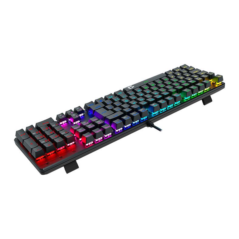 Full-size com iluminação rainbow e keycaps extras vermelhas, para adicionar elegância ao seu setup. Proporcionando uma experiência imersiva e funcional com iluminação vibrante e personalizável.