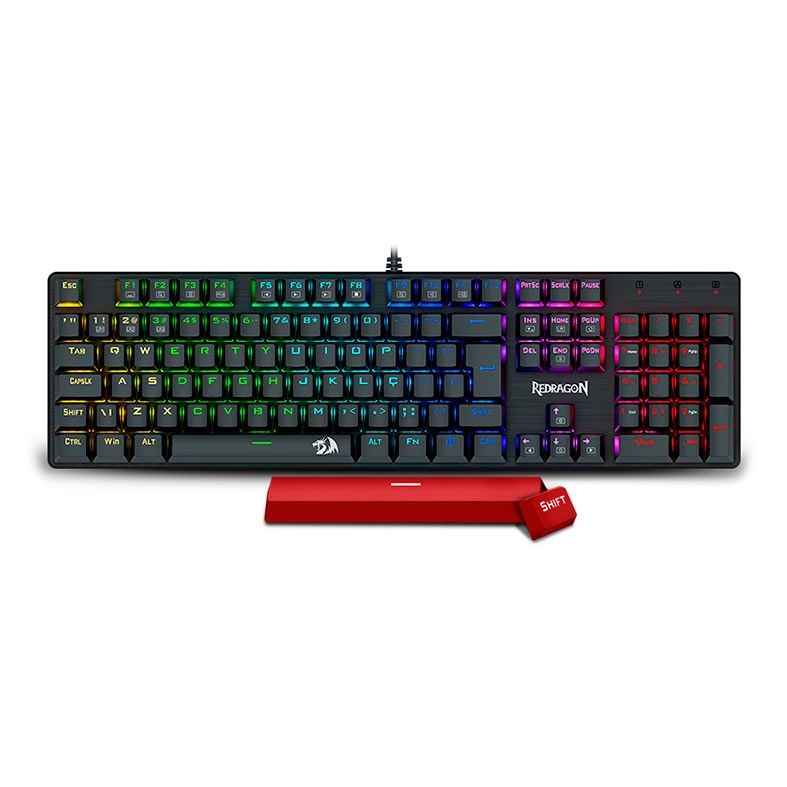 | Características: | Teclado Full Size Redragon Sindri. Iluminação Rainbow. Keycaps double shot injection de maior qualidade para maior longevidade. Layout ABNT2 feito especialmente para o mercado brasileiro. |