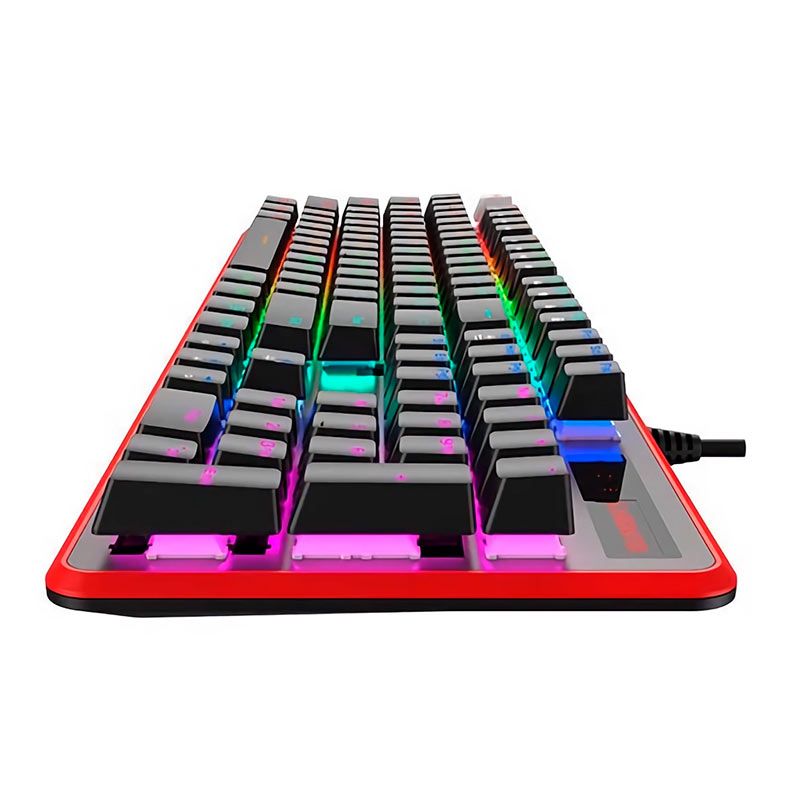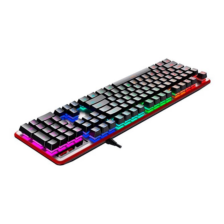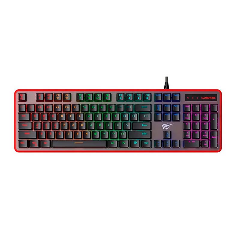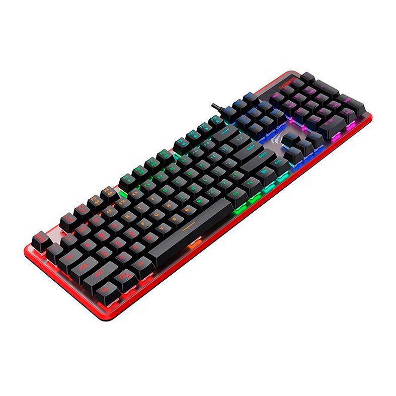 O teclado mecânico Havit KB870L combina desempenho, durabilidade e estilo em um design marcante nas cores preto e vermelho. Equipado com switches azuis, oferece resposta tátil precisa e clique audível característico, proporcionando maior sensação de controle e precisão tanto em jogos quanto na digitação.