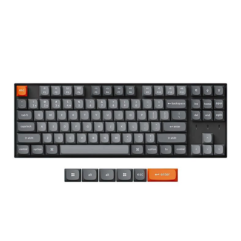 Para refinar ainda mais a sua experiência de digitação, o K8 Max vem com nossas exclusivas keycaps PBT de injeção dupla com perfil OSA (perfil OEM com ângulo esférico). Elas foram projetadas para oferecer uma sensação mais confortável na ponta dos dedos, com excelente resistência a óleos, para uso a longo prazo no clássico layout tenkeyless (sem teclado numérico).