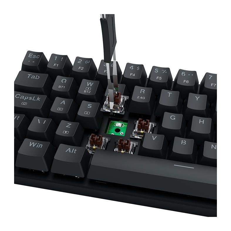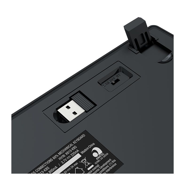 O teclado oferece três tipos de conexão, USB Tipo-C, Wireless 2.4GHz e Bluetooth, trazendo mobilidade e conveniência para quem trabalha com múltiplas plataformas.