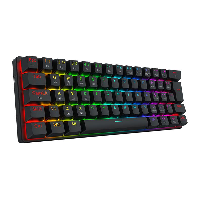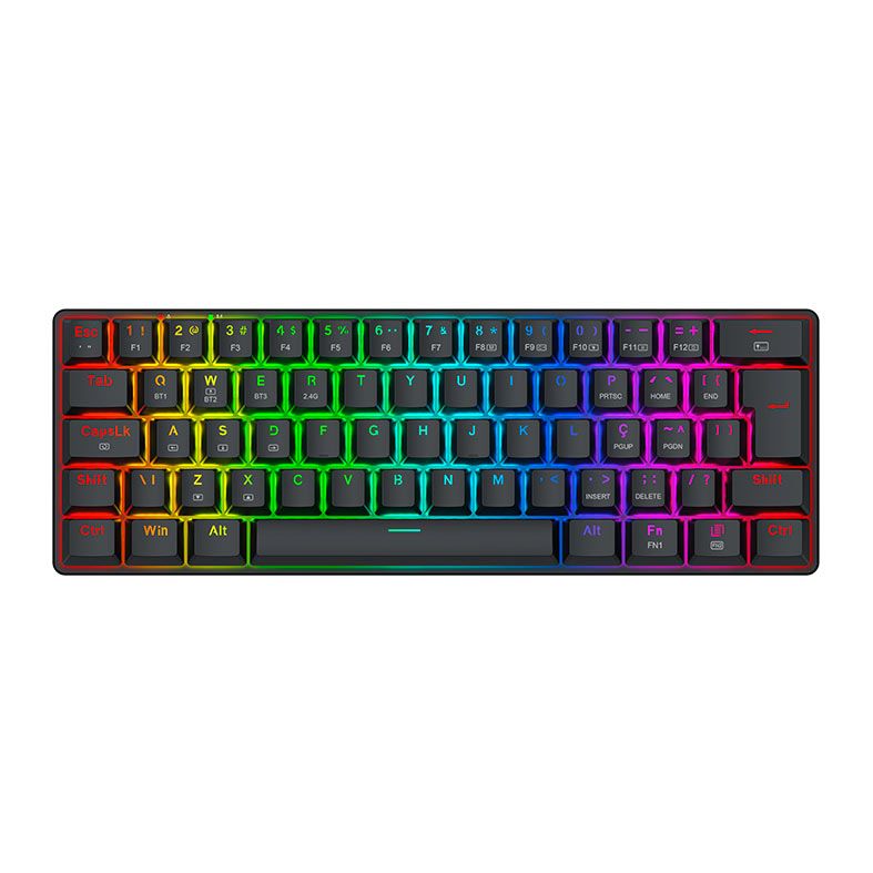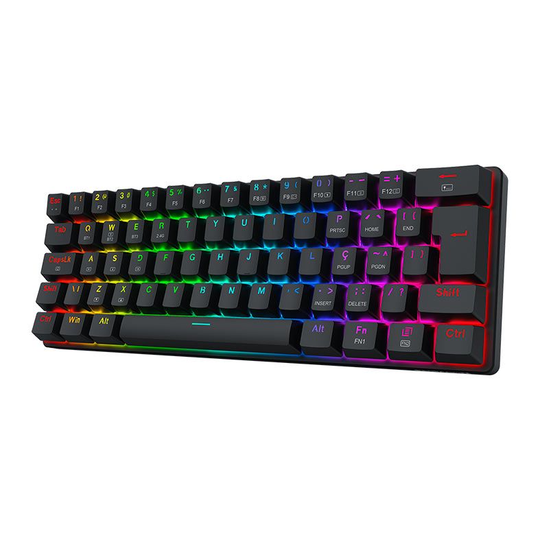 | Características: | - Teclado compacto no formato 60% para os usuários que buscam maximizar o espaço para o mouse. - Layout ABNT2 feito especialmente para o mercado brasileiro. - Iluminação RGB individual por tecla trazendo mais brilho para seu setup. - Keycaps feitas com o método doubleshot injection resultando em legendas duradouras. |