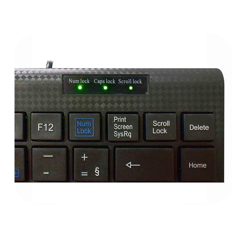 | Características: | Design moderno e compacto. Teclado preto com fio. Padrão ABNT2. Compatível com windows® XP/vista/7/8/10. LED indicador de Num Lock, Caps Lock e Scroll Lock ativados. |