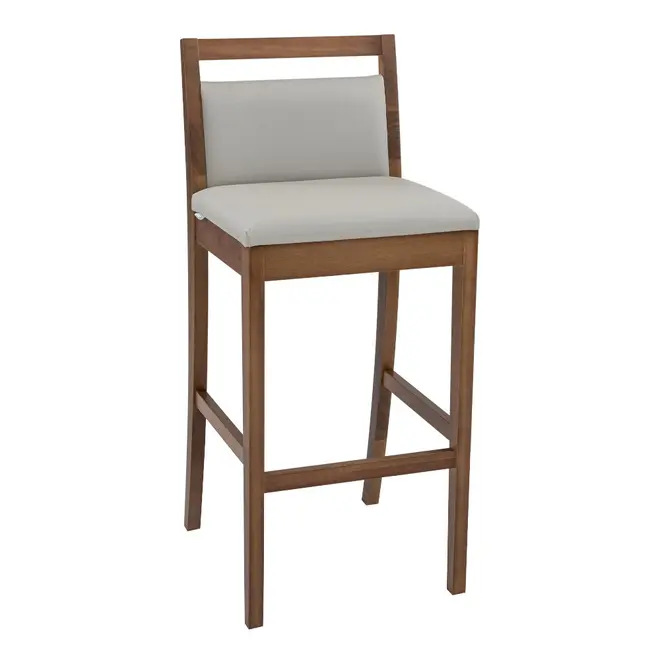 Banqueta Alta com Assento Estofado e Pés em Madeira Maciça Herval MH 3283
