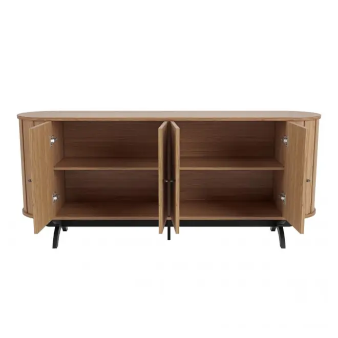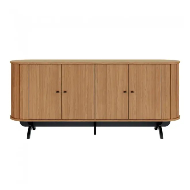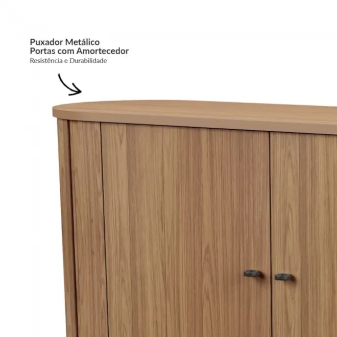 Suas 4 portas dão acesso ao seu amplo espaço internos com prateleiras, ideais para organizar louças, utensílios e outros itens do dia a dia da sua preferência. Outro diferencial desse produto é sua borda aredondada, e laterais com ripado curvo que dão total destaque e sofisticação ao móvel.