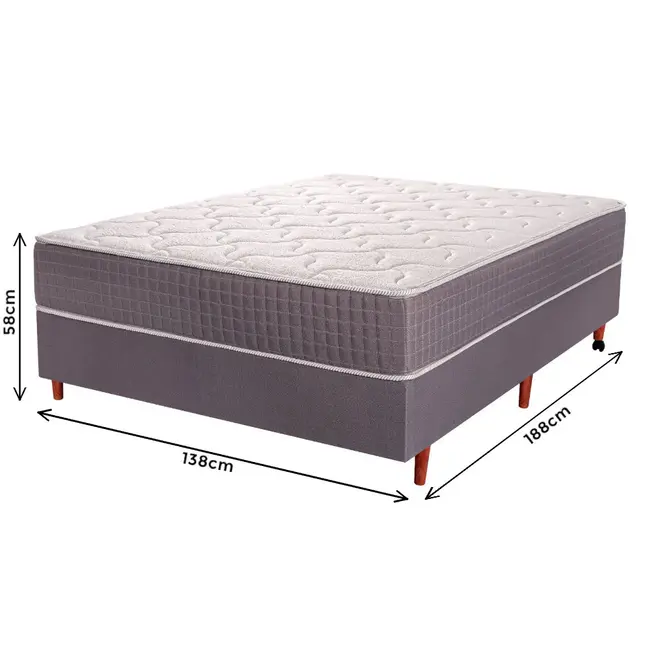 Essa cama box é composta por um Colchão modelo Flash da Cristalflex que traz um sistema de molas ensacadas individualmente, a cama proporciona um nível de conforto firme, ideal para quem prefere uma base mais sólida durante o sono. As molas são dispostas com uma densidade de 170 molas por metro quadrado, cada uma com arame de 2,00mm de espessura, garantindo durabilidade e suporte adequado. O colchão também é revestido com tecido poliéster e passa por um tratamento actgard, promovendo um ambiente mais saudável para o descanso.