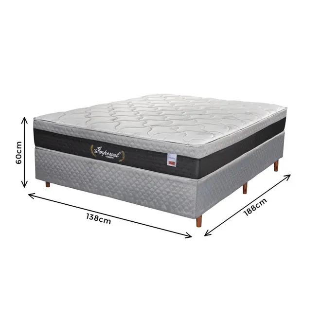 Desenvolvida com estrutura de Madeira de eucalipto, ela possui resistência e durabilidade suportando até 110kg por pessoa. O colchão imperial foi desenvolvido com tratamento Actigard: ácaros, fungos e mofos, para proporcionar maior segurança para a sua pele e vias respiratórias.
