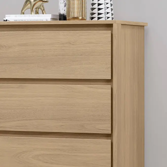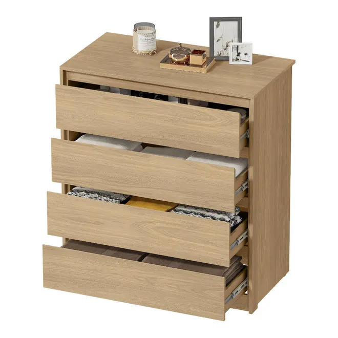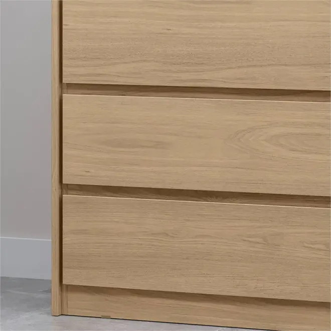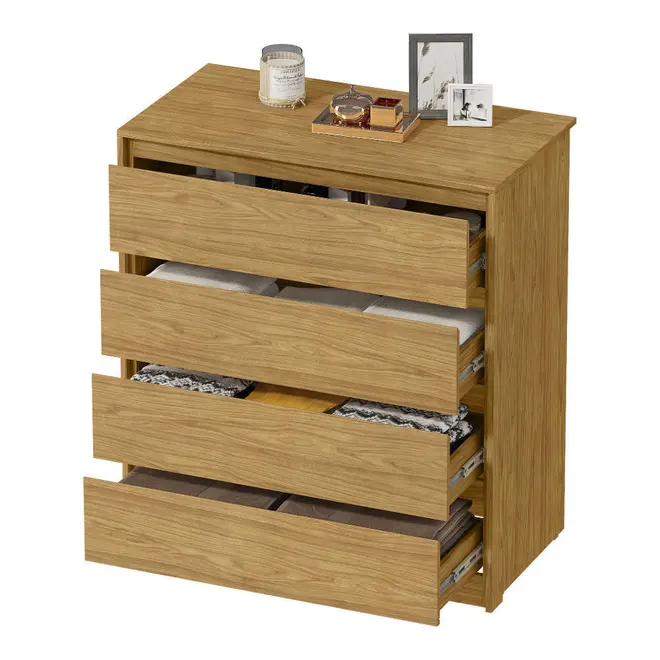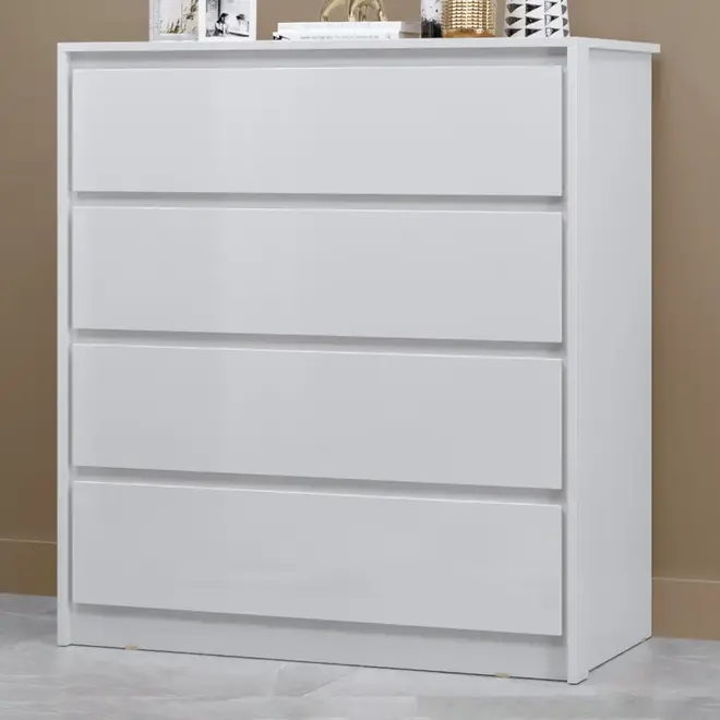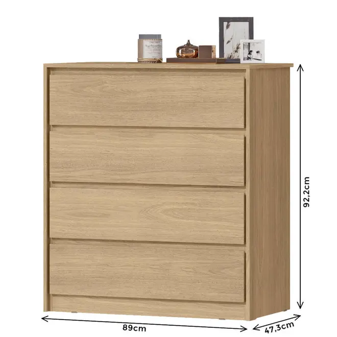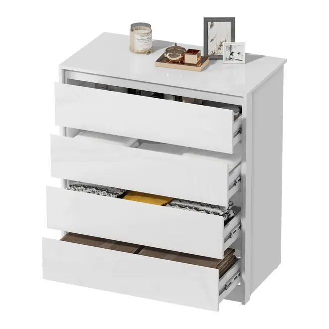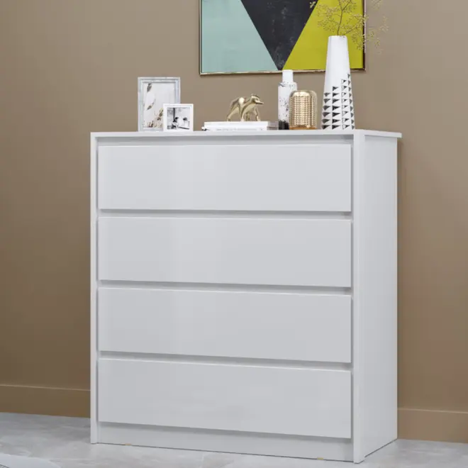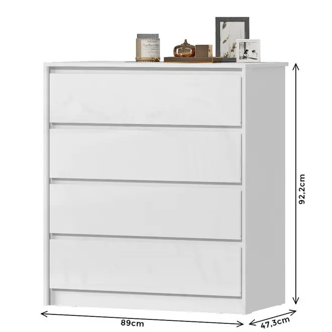 A Cômoda MX Móveis Carla conta com 4 gavetas espaçosas, equipadas com corrediças telescópicas, que proporcionam um deslizamento suave, seguro e silencioso. Perfeita para guardar roupas, acessórios, documentos ou o que mais você quiser manter sempre à mão e bem organizado.