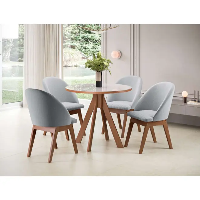 Esse conjunto é composto pela Mesa Dallas e 4 Cadeiras Isis, ele foi pensado para quem valoriza durabilidade e funcionalidade sem abrir mão de um belo design. A mesa Dallas acomoda confortavelmente até 4 pessoas e traz uma estrutura robusta em madeira. Seu tampo em MDF com vidro sobreposto suporta até 30kg, ideal para jantares com a família ou até mesmo momentos de lazer com os amigos.