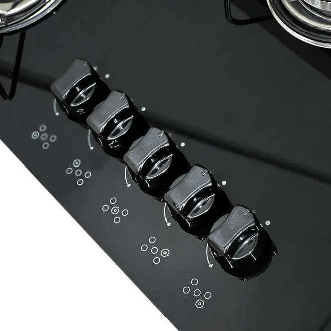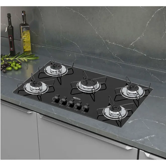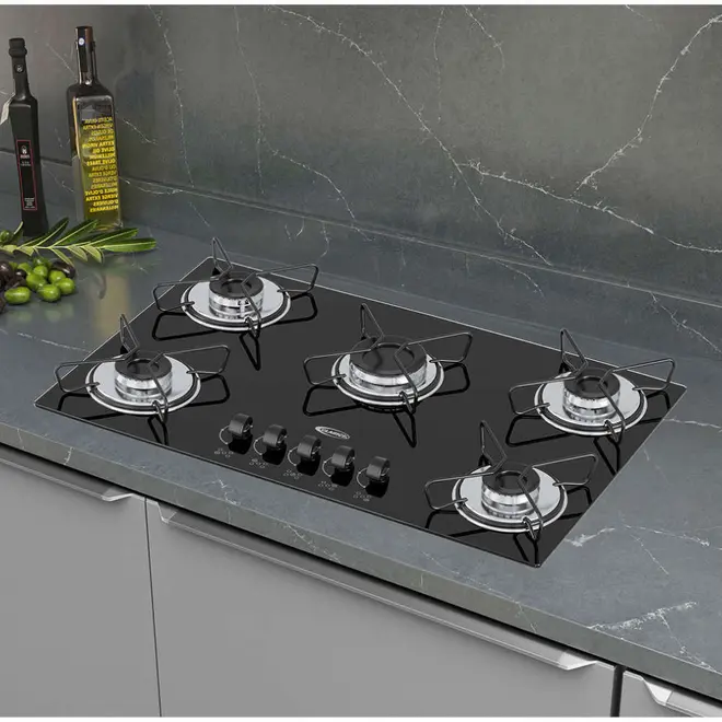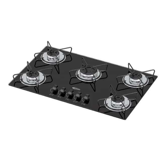 Cooktop 5 Bocas a Gás Clarice Mega Chama com Mesa em Vidro Temperado Preto – Bivolt