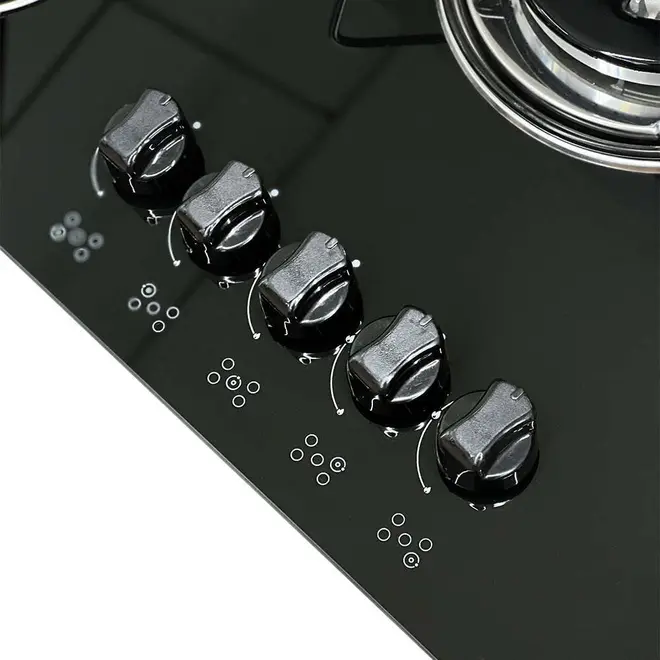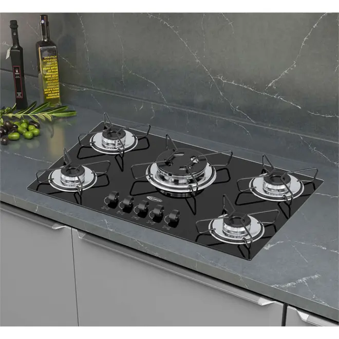 Cooktop 5 Bocas a Gás Clarice Tripla Chama com Mesa em Vidro Temperado Preto – Bivolt