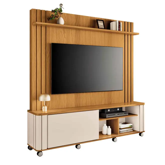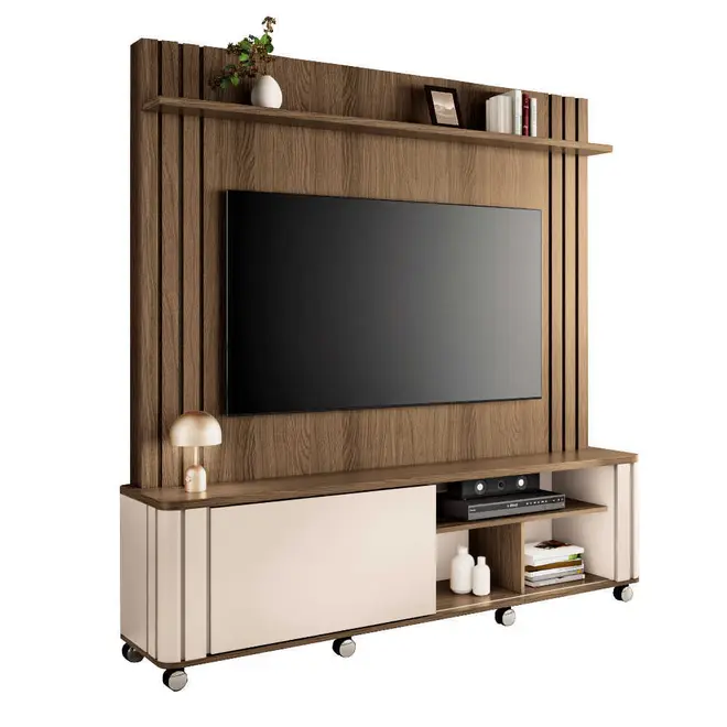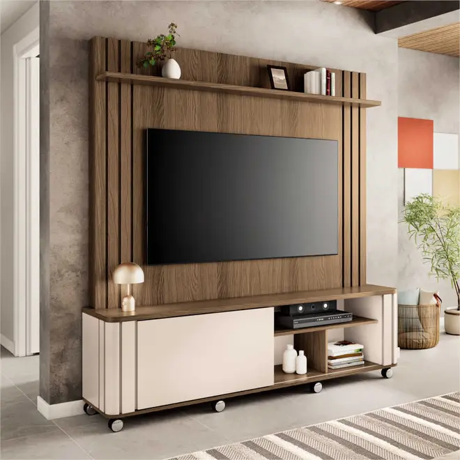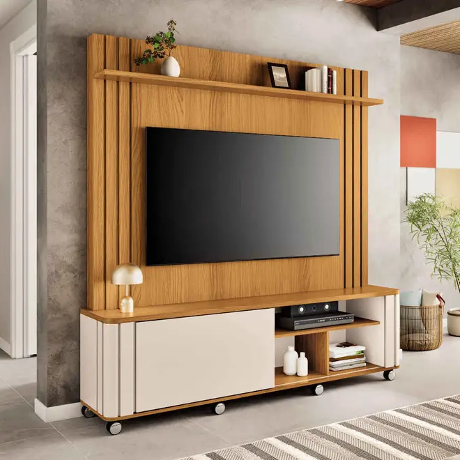 Com um design inovador e linhas ripadas decorativas, a Estante Home Trinus 1.8 traz um toque sofisticado que vai encantar sua família e amigos, além de ser a solução ideal para acomodar sua TV de até 70”, criando um ambiente agradável e prático.