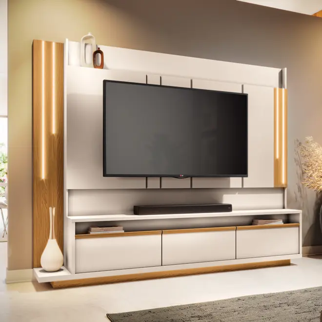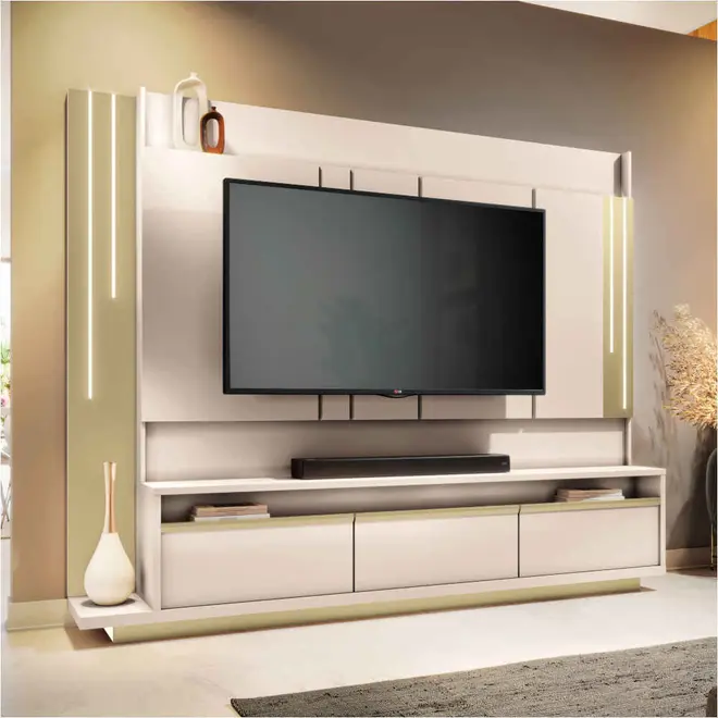 Podemos começar falando sobre a linda estrutura que ela possui, com duas gavetas e uma portinha que facilita e muito a organização e boa distribuição dos seus objetos! Ela é composta por MDF revestido e possui um design moderno e cheio de vida, com detalhes em LED que vão garantir para o espaço da sua sala uma sensação mais intimista e aconchegante, ideal para aproveitar e muito aqueles momentos em família que tem um imenso valor. E para finalizar, conte com o espaço que ela possui e é perfeito para acomodar televisores de até 75 polegadas com segurança e muita facilidade!