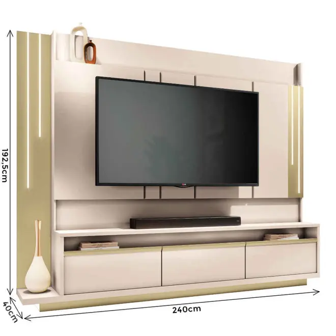 Estante Home para TV até 75 Polegadas 2,4m 1 Porta 2 Gavetas HB Móveis Montane