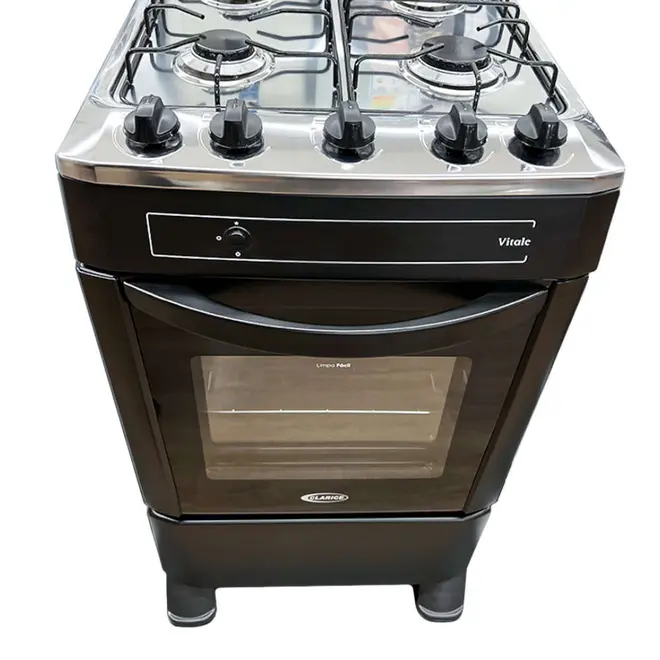 Fogão 4 Bocas Clarice Vitale com Mesa em Aço Inox e Acendimento Automático Preto - Bivolt